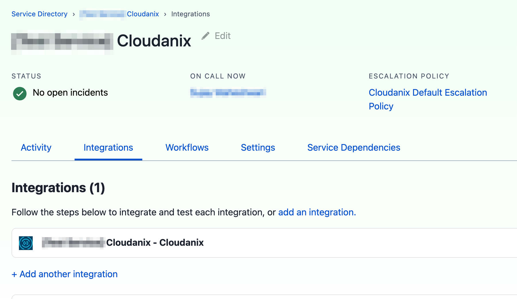 In PagerDuty, you should see Cloudanix is displayed as an integration in the Integration tab for the Authorized Services.